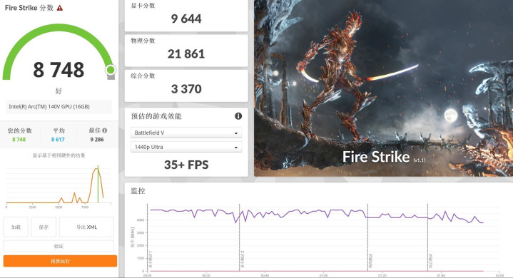 参考3DMark Time Spy和Fire Strike测试,锐炫140V核显的图形分数分别为4122和9644,而上一代锐炫核显在相同测试中分别得分3298和8664,理论性能分别提升22%和9.5%,因此其DX12性能提升更为显著。