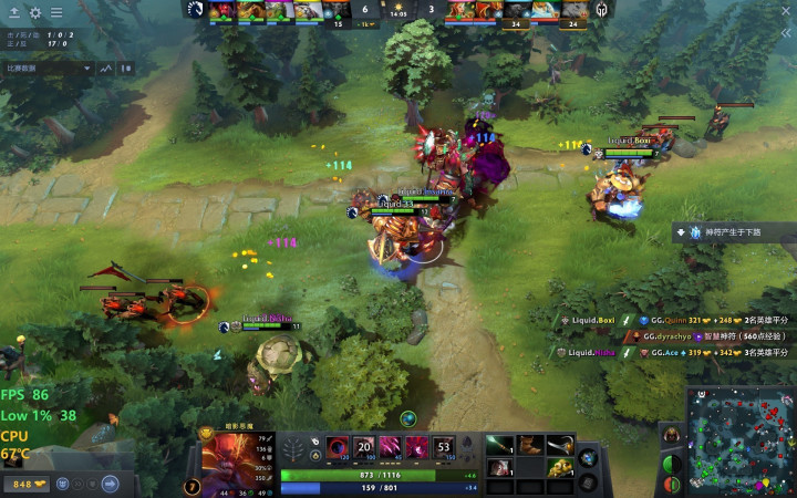 如果遇到更加依赖GPU的游戏的话,那么锐炫140V图形性能升级的效果就会凸显出来。比如《DOTA2》,1080p最高画质平均帧数达到了85fps,相比上一代平均60fps+的流畅度提升显著。